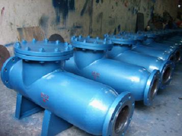 我公司生產(chǎn)的除污器的特點是濾網(wǎng)由原標(biāo)準(zhǔn)圖中規(guī)定的鍍鋅鐵絲網(wǎng)改進(jìn)為專用不銹鋼濾網(wǎng)。在除污器中,水流由進(jìn)水口進(jìn)入筒體,經(jīng)過濾網(wǎng)過濾的水流由出水口流出,污垢則沉降于除污器底部,經(jīng)過排污孔排出。